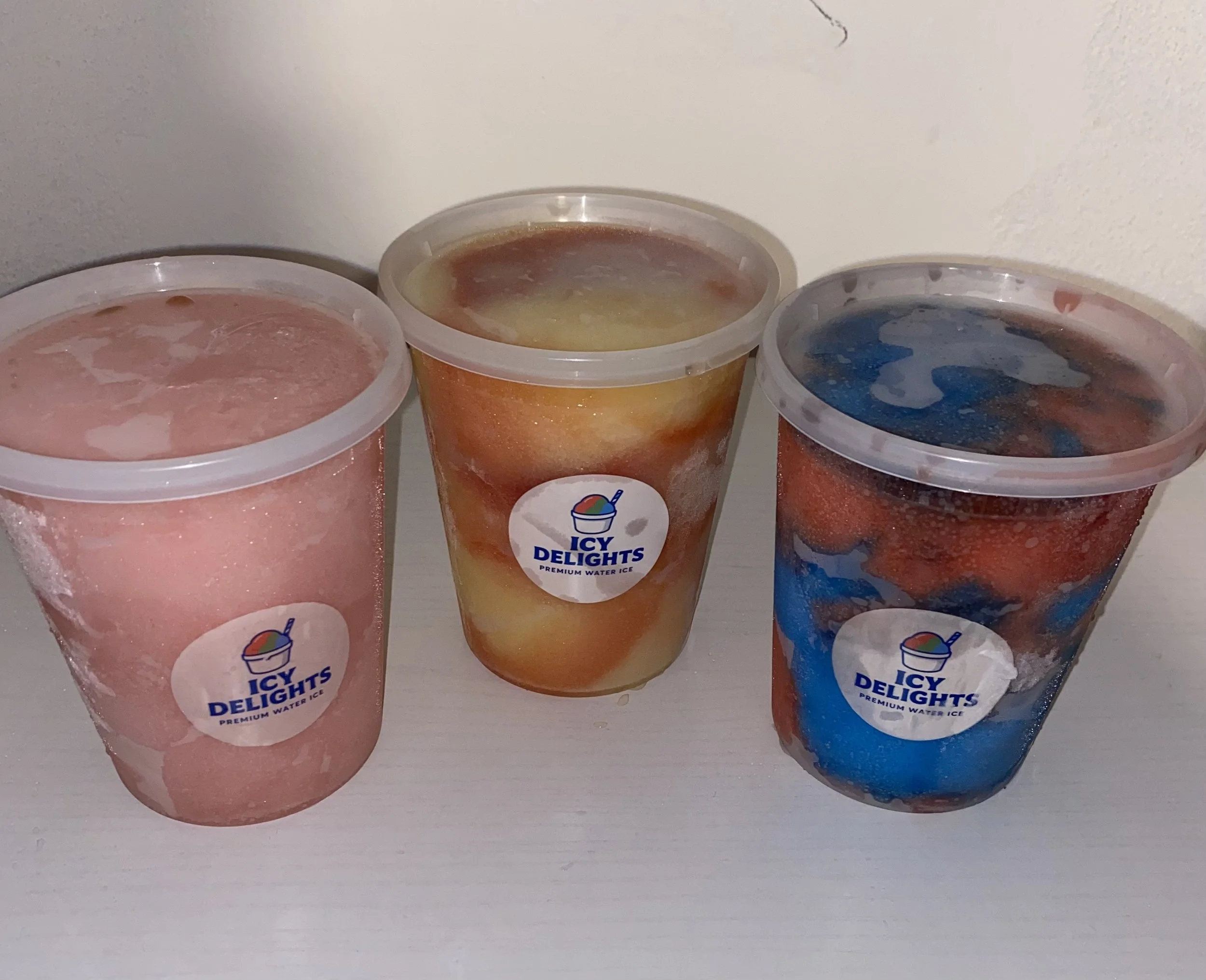 Strawberry Lemonade from $7.00 Tropical Rainbow from $7.00 Birthday Cake Water Ice from $7.00 Banana Coolada Water Ice from $7.00 Gelati from $8.00 Icy Flight $9.00 Candy Fish Water Ice from $7.00 Sour Apple Water Ice from $7.00 Cotton Candy Water Ice from $7.00 Toppings $1.00